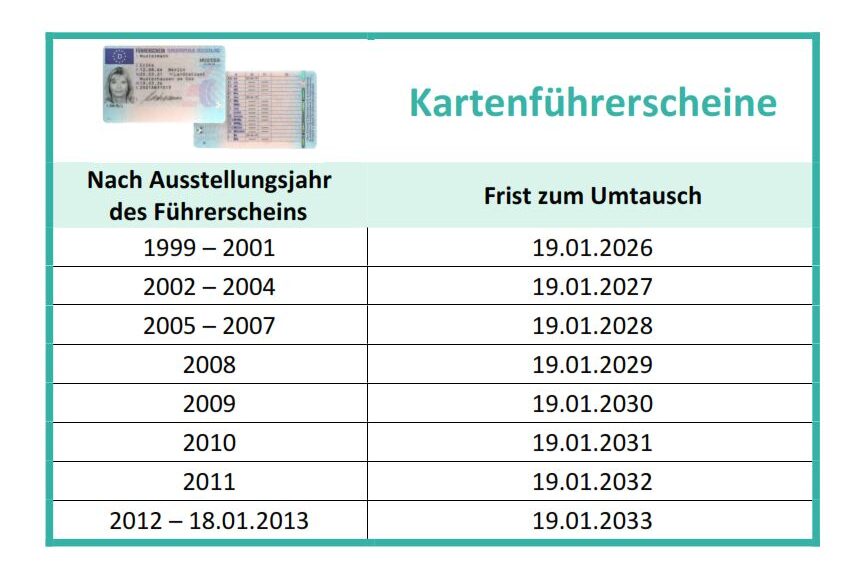 Übrigens: Wann genau ein Führerschein getauscht werden muss, kann aus der folgenden Übersicht entnommen werden! Bei weiteren Fragen rund um die Antragstellung von Ausweis- oder Führerscheinanträgen hilft das Team vom Bürgerbüro gerne weiter!