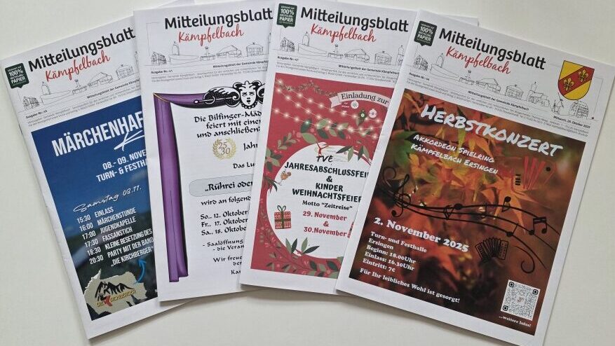 Das Mitteilungsblatt der Gemeinde Kämpfelbach mit den Ortsteilen Bilfingen und Ersingen ist das offizielle Veröffentlichungsorgan der Gemeinde. Wöchentlich erscheinen dort alle amtlichen Bekanntmachungen, wichtige Informationen aus der Verwaltung und des Gemeinderats sowie aktuelle Meldungen aus dem Ortsgeschehen.