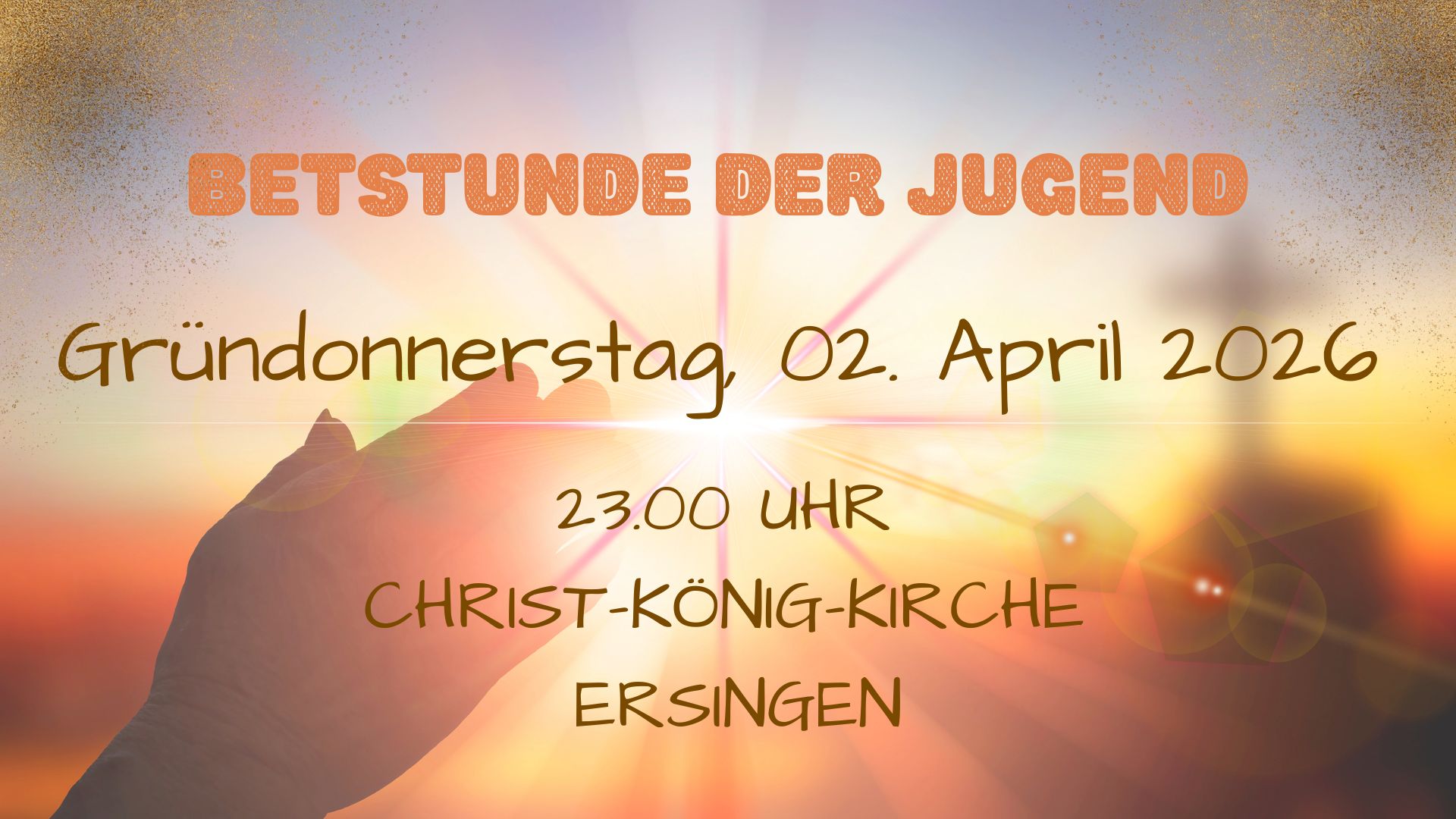 Am Gründonnerstag, den 2. April 2026, findet in der Christ-König Kirche um 23 Uhr die Betstunde der Jugend statt. In diesem Rahmen wollen wir den ökumenischen Kreuzweg der Jugend miteinander beten.