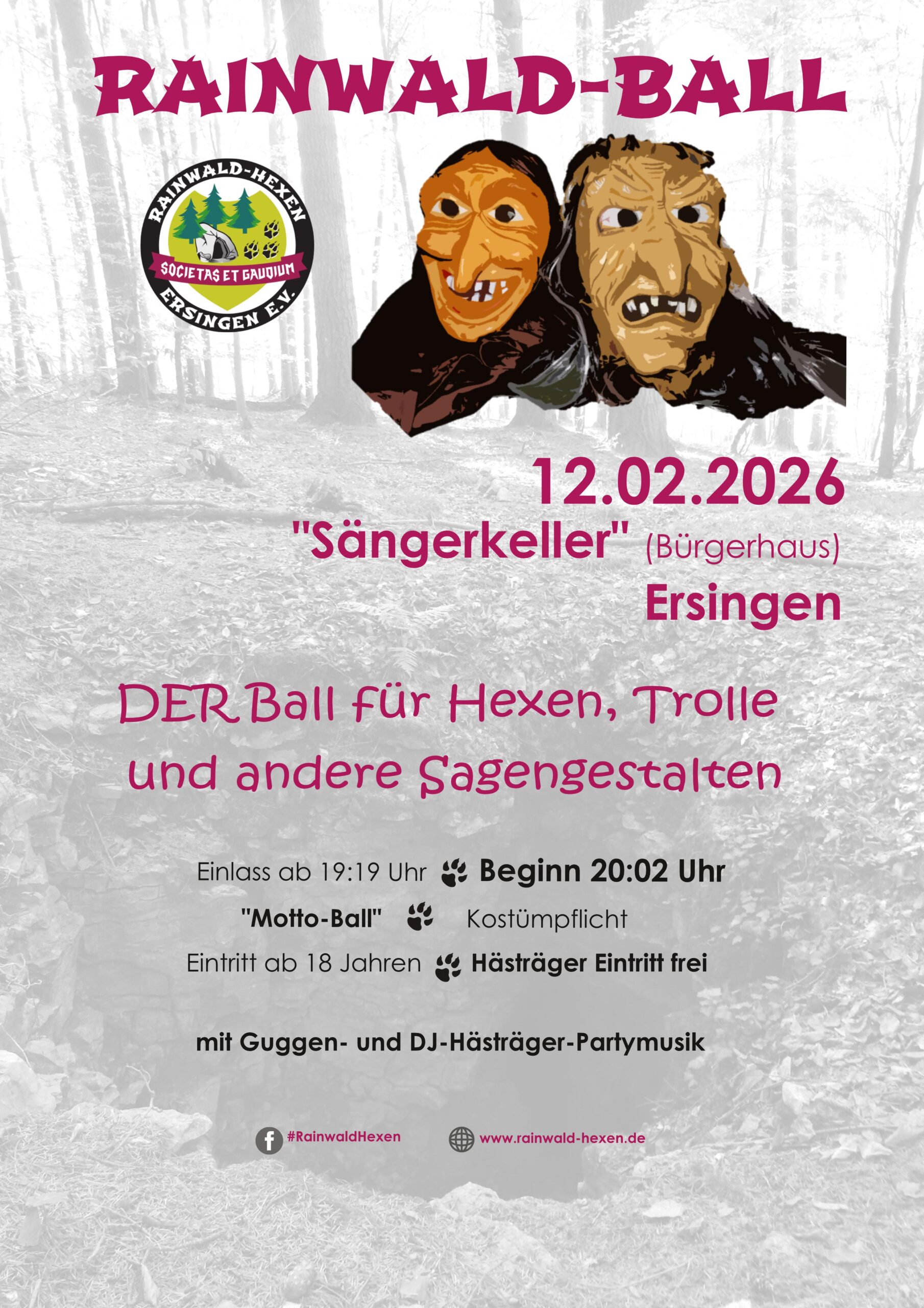 Die Rainwald-Hexen Ersingen e.V. laden zu einem magischen Fasnetsabend in den Sängerkeller (Bürgerhaus) ein.